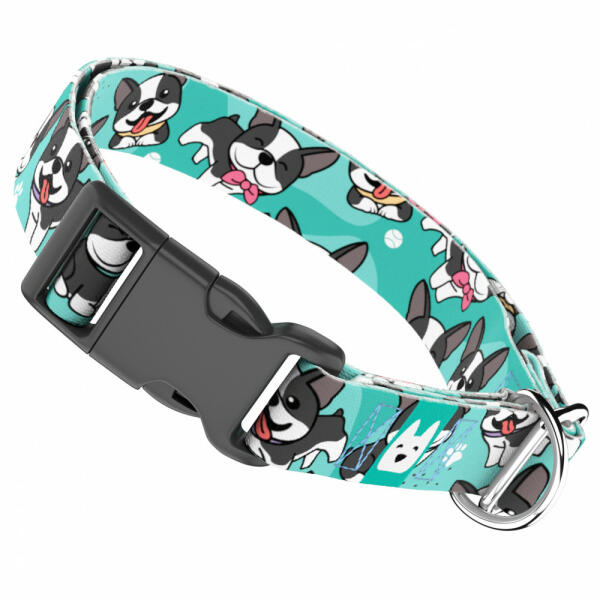 Cuki Boston Terrier mintás nyakörv kutyádnak különböző méretekben. Öltöztesd kedvenced hazai gyártású egyedi nyakörvünkbe, amit kérhettek trendi rose gold, mindig elegáns ezüst fém alkatrészekkel vagy könnyű műanyag csattal. Ahhoz, hogy ezeket a különleges mintákat meg tudjuk alkotni, műhelyünkben nyomtatjuk a hevedert. Minden terméket csak igény esetén gyártunk le,