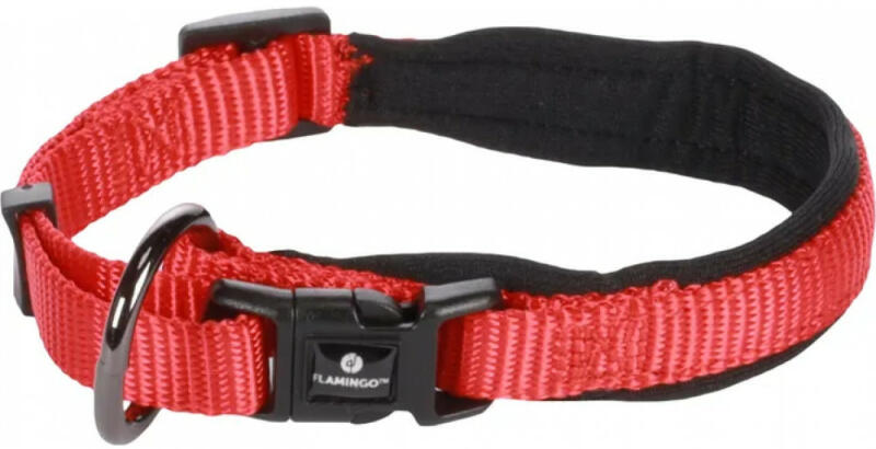 Flamingo Abbi piros színű nyakörv kutyák számára több méretben. Jellemzők: - Anyaga: nejlon puha neoprén béléssel az oldalán. - Folyamatosan állítható. - Hevedercsattal. - Fényes sötétszürke fémgyűrű a póráznak. - Állítható a szorítás. Méretek: XXXS | 25-30cm x 10mm x 2mmXXS | 30-35cm x 15mm x 2mmXS | 35-40cm x 20mm x 2mmS | 40-45cm x 20mm x 2mmM | 45-50cm x 25mm x 2