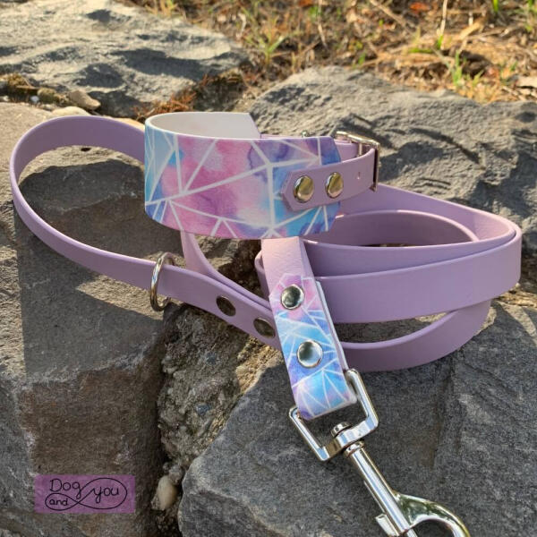 A szett egy 3,8 cm széles nyakörvből és egy 120 cm hosszú pórázból áll. A póráz szélessége: 16 mm A nyakörv állítható része pasztell lila, a póráz színe pasztell lila, fogóján karika található. Az Elite kollekciót 38mm szélességben is megcsináltuk. A csat rész könnyű, a fix rész 3,8 cm széles. A BioThane® vízlepergető, így strandolásra is tökéletes. Póráz