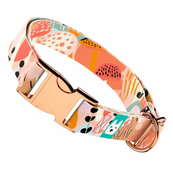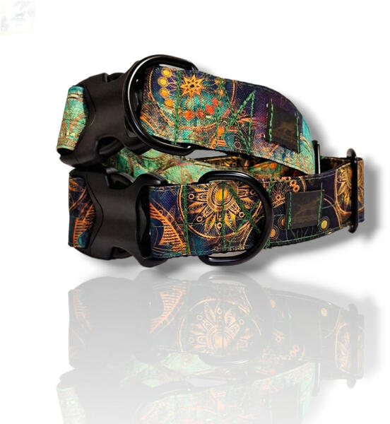 Színes absztrakt gomba mintás nyakörv kutyádnak különböző méretekben. Öltöztesd kedvenced hazai gyártású egyedi nyakörvünkbe, amit kérhettek trendi rose gold, mindig elegáns ezüst fém alkatrészekkel vagy könnyű műanyag csattal. Ahhoz, hogy ezeket a különleges mintákat meg tudjuk alkotni, műhelyünkben nyomtatjuk a hevedert. Minden terméket csak igény esetén gyártunk