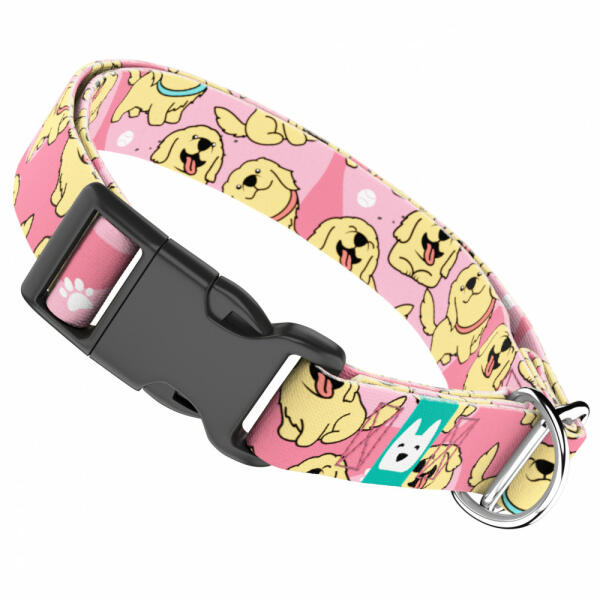 Golden retriever mintás nyakörv kutyádnak különböző méretekben. Öltöztesd kedvenced hazai gyártású egyedi nyakörvünkbe, amit kérhettek trendi rose gold, mindig elegáns ezüst fém alkatrészekkel vagy könnyű műanyag csattal. Ahhoz, hogy ezeket a különleges mintákat meg tudjuk alkotni, műhelyünkben nyomtatjuk a hevedert. Minden terméket csak igény esetén gyártunk le, í