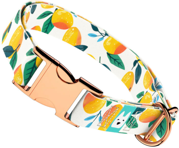 Mangó mintás nyakörv kutyádnak különböző méretekben. Öltöztesd kedvenced hazai gyártású egyedi nyakörvünkbe, amit kérhettek trendi rose gold, mindig elegáns ezüst fém alkatrészekkel vagy könnyű műanyag csattal. Ahhoz, hogy ezeket a különleges mintákat meg tudjuk alkotni, műhelyünkben nyomtatjuk a hevedert. Minden terméket csak igény esetén gyártunk le, így elkerü