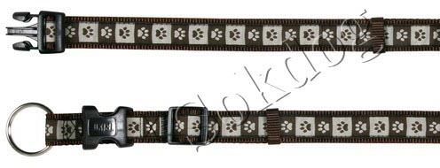 Csokibarna tappancsmintás nyakörv kistestű kutyáknak. 1cm széles, 15-25cm max. állíthatóság.