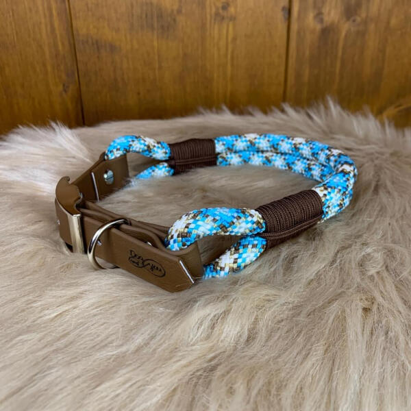A dupla soros kötél nyakörv kb 3 cm széles, praktikus és mutatós darab. Az állíthatóságát Biothan-nel oldottuk meg, mely 2 cm széles, strapabíró anyag. A kép csak illusztráció, a legördülő sávokban választhattok kötél színt, díszelkötést, fémkelléket és megváltoztathatjátok a csatos rész színét is. Ha egyedi kérésed van, fordulj hozzánk bizalommal! Nyakméré
