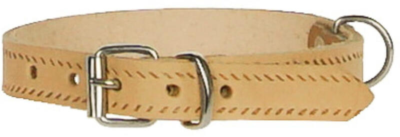 Valódi marhabőrből, készült 1,5 cm széles natúr színű nyakörv kedvenc kiskutyusunk biztonságos sétáltatásához. Karikája zártra van hegesztve, így a kutya nagyobb rántása esetén sem nyílik szét. Hossz állítási lehetőség 29 - 35,5 cm, 5 lyukkal.