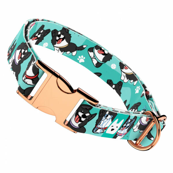 Border Collie mintás nyakörv kutyádnak különböző méretekben. Öltöztesd kedvenced hazai gyártású egyedi nyakörvünkbe, amit kérhettek trendi rose gold, mindig elegáns ezüst fém alkatrészekkel vagy könnyű műanyag csattal. Ahhoz, hogy ezeket a különleges mintákat meg tudjuk alkotni, műhelyünkben nyomtatjuk a hevedert. Minden terméket csak igény esetén gyártunk le, így