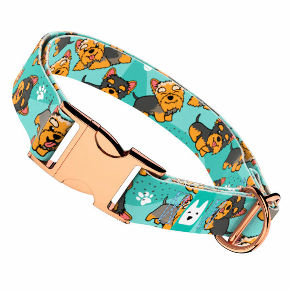 Yorkie mintás nyakörv kutyádnak különböző méretekben. Öltöztesd kedvenced hazai gyártású egyedi nyakörvünkbe, amit kérhettek trendi rose gold, mindig elegáns ezüst fém alkatrészekkel vagy könnyű műanyag csattal. Ahhoz, hogy ezeket a különleges mintákat meg tudjuk alkotni, műhelyünkben nyomtatjuk a hevedert. Minden terméket csak igény esetén gyártunk le, így elkerü