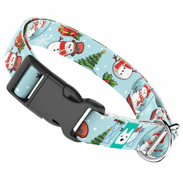 Hóember mintás nyakörv kutyádnak különböző méretekben. Öltöztesd kedvenced hazai gyártású egyedi nyakörvünkbe, amit kérhettek trendi rose gold, mindig elegáns ezüst fém alkatrészekkel vagy könnyű műanyag csattal. Ahhoz, hogy ezeket a különleges mintákat meg tudjuk alkotni, műhelyünkben nyomtatjuk a hevedert. Minden terméket csak igény esetén gyártunk le, így elker