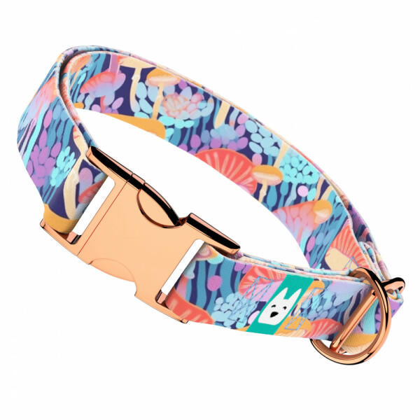 Absztrakt színes gomba mintás nyakörv kutyádnak különböző méretekben. Öltöztesd kedvenced hazai gyártású egyedi nyakörvünkbe, amit kérhettek trendi rose gold, mindig elegáns ezüst fém alkatrészekkel vagy könnyű műanyag csattal. Ahhoz, hogy ezeket a különleges mintákat meg tudjuk alkotni, műhelyünkben nyomtatjuk a hevedert. Minden terméket csak igény esetén gyártunk