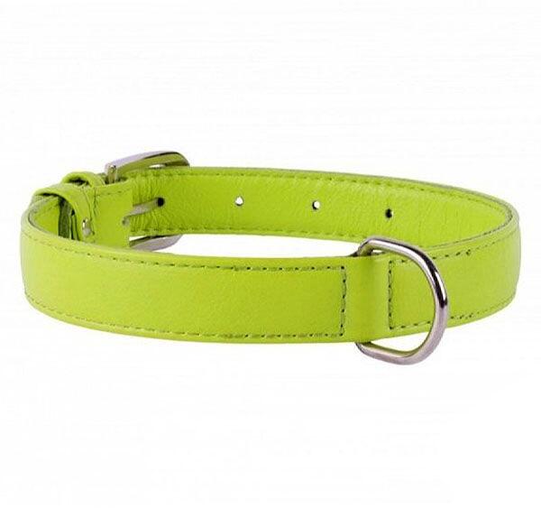 Zöld színű, bőr nyakörv közepes testű kutyafajták számára, 38 - 49cm hosszal és 25 mm szélességgel. Kiváló minőségű, speciálisan színezett bőrből, amely nem hagy nyomot a kutya szőrén. Nyak kerülete: 38 - 49 cm Szélesség: 25 mm
