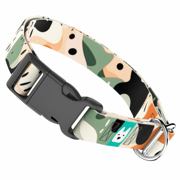 Absztrakt divatos terepmintás nyakörv kutyádnak különböző méretekben. Öltöztesd kedvenced hazai gyártású egyedi nyakörvünkbe, amit kérhettek trendi rose gold, mindig elegáns ezüst fém alkatrészekkel vagy könnyű műanyag csattal. Ahhoz, hogy ezeket a különleges mintákat meg tudjuk alkotni, műhelyünkben nyomtatjuk a hevedert. Minden terméket csak igény esetén gyártunk