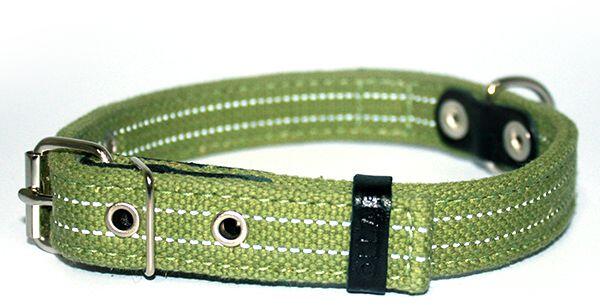Zöld színű, két rétegű pamut póráz fényvisszaverő elemekkel. Két rétegű pamut póráz bőrrel kombinálva. A fényvisszaverő elemek bele vannak varrva a pórázba, nem csupán rá vannak festve. A pamut a kutyák és gazdáik számára is kellemesebb és természetesebb anyag, mint a nylon. Nyak kerülete: 31 - 41 cm Szélesség: 20 mm