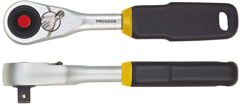 Finom fogazatú (72 fog) racsni rendkívül vékony fejjel. A teljes hossz rövidített a szűk helyen végzendő munkákhoz. A 72 fog közül több fog egy időben zár, nagy nyomaték továbbítására képes. Könnyen kezelhető irányváltó kapcsoló, A dugókulcsok kioldása gombnyomással. CrV acélból, duplán nikkelezett, krómozott bevonat. Gumi markolat.
