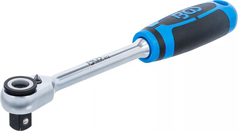 Hajtószár mérete: 1/4" (12,7 mm) Forgatható fej Fogak száma: 72; Hossz: 255 mm Anyaga: 40CrV DIN: 3122; felület: szatén fogantyú anyaga: PP, TPR