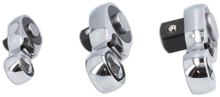 Laser Tools - UK Három mini racsnis fejből álló készlet 1/4", 3/8" és 1/2" méretben, ideális szűk vagy nehezen hozzáférhető helyeken. Ezek a speciális kialakítású racsnis fejek alternatívát kínálnak a "Crowfoot" célszerszámok mellett. Tulajdonságok: - 72 fogú racsnis reteszelő mechanizmus - Maximális nyomatékok: - 1/4" esetén: 78 Nm - 3/8" esetén: 245 Nm - 1/2" esetén
