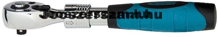 King Tony irányváltós racsnis hajtószár jellemzői 1/4"-os irányváltós racsni 72 fogú, 5°-os szögelfordulású racsni Hossz: 150 mm Billenőfejes racsni Anyaga: króm-vanádium ötvözött acél, Króm-molibdén-acél racsniszerkezet Gumírozott nyél Felületkezelés: polírozott, kró