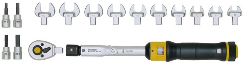 Univerzális Készletösszeállítás Alkalma s Jobbos Menettel Rendelkező Csavarkötések Előírt Nyomatékig Történő Meghúzására Beépített Racsnis Kulcs Keskeny Fejformával Átkapcsolható Racsnis Mechanizmus Egyszerű Reteszelés És Feloldás A Fogantyún Optimális Kialakítású Műanyag Fogantyú A Kívánt Nyomatékérték Könnyű Beállításához, Valamint A Szerszám Biztons
