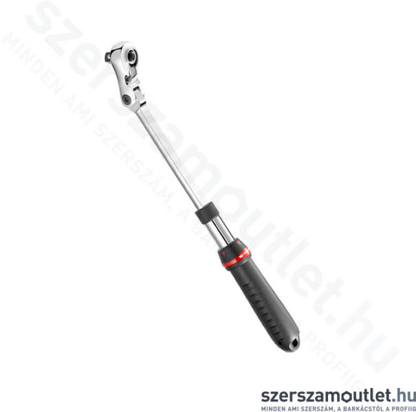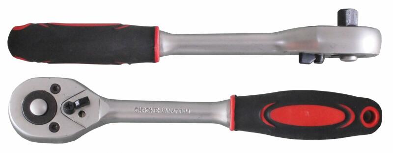 A racsnis kulcs króm-vanádium acélból készül. Korróziógátló króm bevonattal rendelkezik. A kapcsolóval ellátott racsnis mechanizmus zökkenőmentesen halad és lehetővé teszi a kulcs forgásirányának gyors megváltoztatását. A gömbtartóval ellátott összekötő négyzet megbízhatóan tartja a különféle méretű kivehető csatlakozófejeket, hosszabbítókat, adaptereket