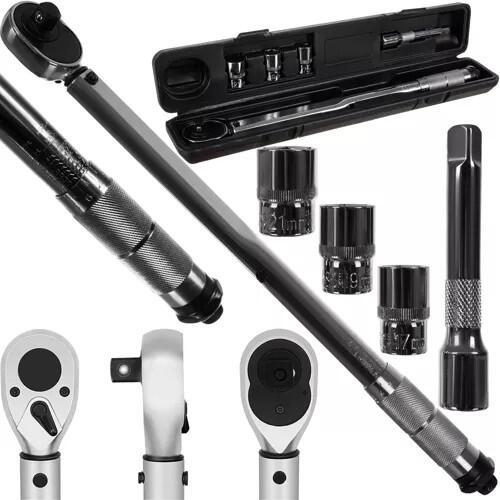 Nyomatékkulcskészlet 1/4", 3/8", 1/2" 3 db. A Neo 08-843 egy átfogó készlet tartós csavarkulcsokból a következő tartományokban: ¼" 5-25 Nm és 25 cm hosszú, ½" 65-350 Nm és 54,5 cm hosszú, valamint 3/8" 20-100 Nm és 46 cm hosszú. A szerszámok fémszerkezetűek és ötvözött acélcső megerősítéssel rendelkeznek. A kulcsok munkarésze kiváló minőségű CrV acélból kész