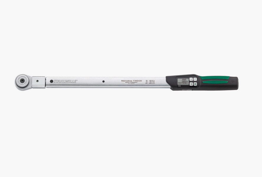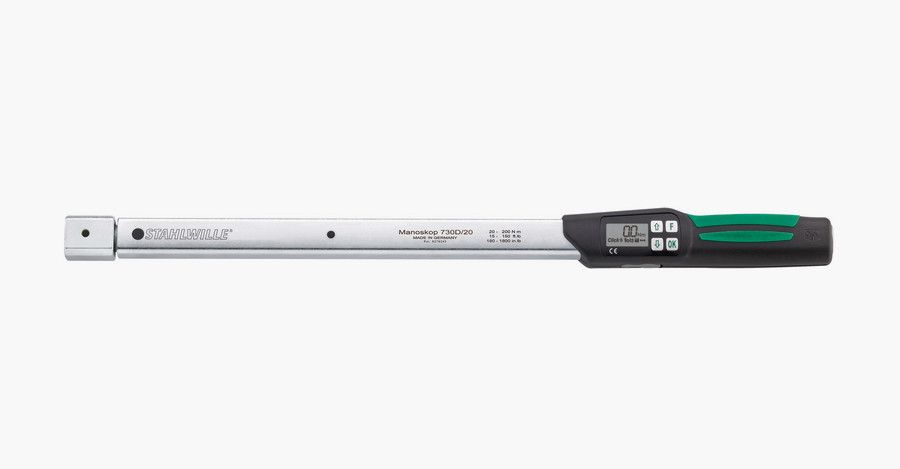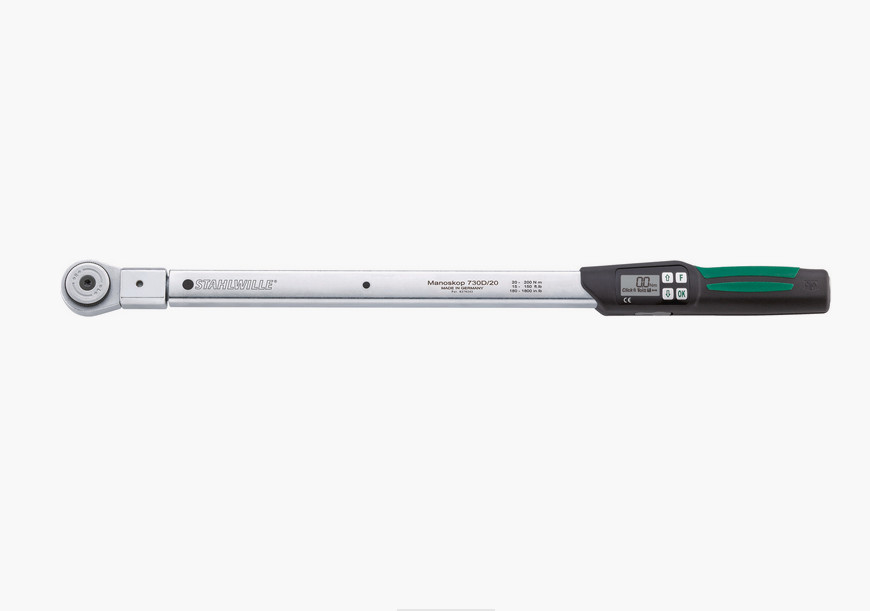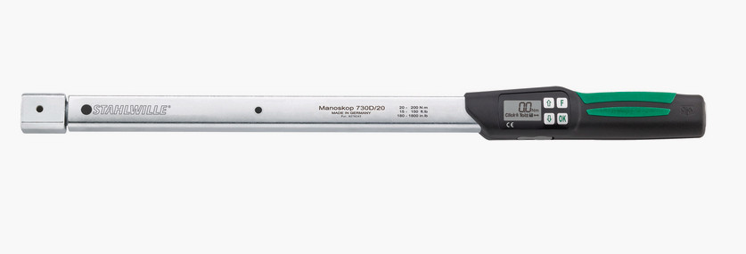 A beállított nyomaték elérésekor a kulcs LED-fény, hang, és vibrációs kijelzést ad , rátűzős-fejjel, Jobbos / balos meghúzás ! Digitális rátűzős merev kulcs, szög-kontrollált meghúzás - ellenőrzés, (szög-modul-mérő egységgel 7395-1 ) tűrésmező beállítás, piros / zöld jelzés, USB-interface, 7500-adat memória, Olaj-álló markolat, 20-200/0,1Nm, Nm/ft skála, 14
