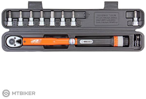 Super B TB-TW30 nyomatékkulcs Kiváló minőségű SuperB nyomatékkulcs, melynek csomagja a következőket tartalmazza: - imbuszbitek 4 / 5 / 6 / 8 / 10 mm - Torx bitek 25 / 30 / 40
