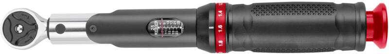 Dial torque wrench Accuracy ± 4% Visual signal Reversible operation Dual scale in metric and imperial Memory needle Anti-shock protected dial With rubber sleeve in 1/4", 3/8" and 1/2" models