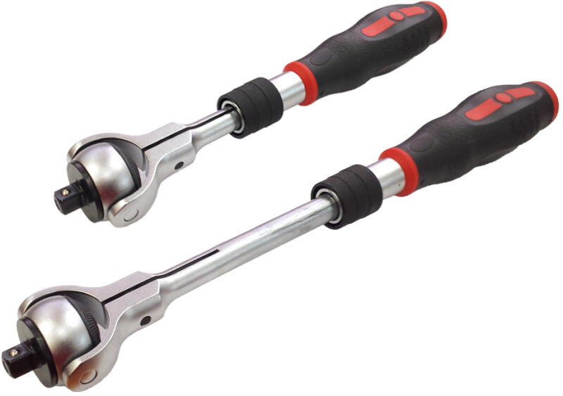 Laser Tools - UK Állítható szárú, telszkópos 72 fogú, forgó fejű racsnis kulcs Jellemzők: - Ergonomikus TPR fogantyúval szerelt kivitel. - Állíthatós csúszka fekete foszfát bevonatos - Kifejezetten a szűk helyekre tervezett, lapos fej résszel kialakított 360°-ban forgatható fej rész - Meghajtás: 3/4" - Fogak: 72 fog - Chrome-Vanádium acél - TPR markolat műanyag és gumi e