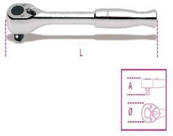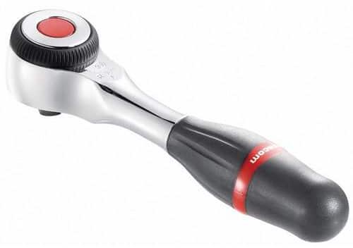 Forgó fogantyú a szűk helyekhez való könnyű hozzáférés érdekében. A forgásirányt a „tenyérvezérlő rendszer tartja fenn. Hatékony racsnis 6°-os visszafutási szöggel (60 fog). Biztonsági fiókzár.