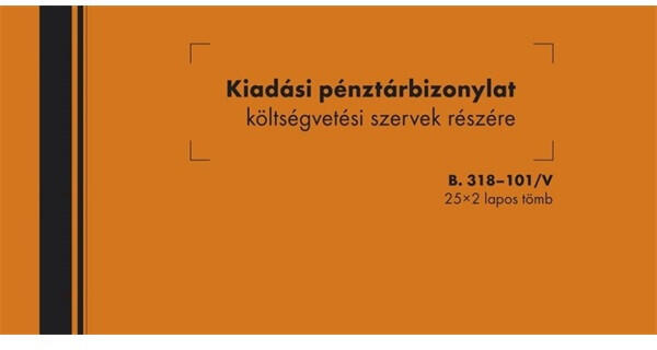 B. 318-101 25x2lapos "Kiadási pénztárbizonylat költségvetési szervek részére" nyomtatvány - Kiadási pénztárbizonylat költségvetési szervek részére - 25 x 2 lapos tömb - Méret: 203 x 102 mm - Termék kód: B. 318-101/V - A borító színe változhat!