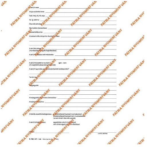 B. VALL. 349 A4 24lapos álló "Munkahelyi munkabaleseti napló" nyomtatvány - Munkahelyi munkabaleseti napló 24 lapos füzet - Formátum: A/4 álló - B. VALL. 347