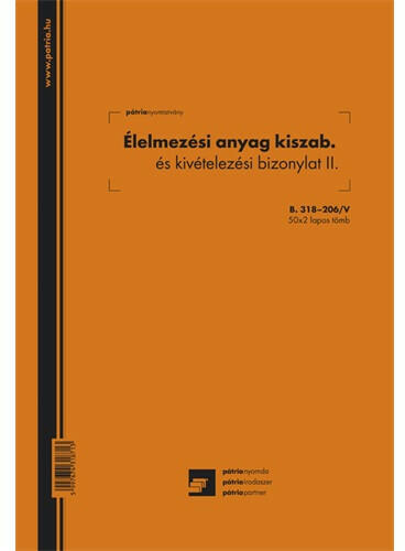 Élelmezési anyag kiszabási és kivételezési bizonylat II. 50x2 lapos tömb A/4 álló 50x2 lapos tömb A/4 álló
