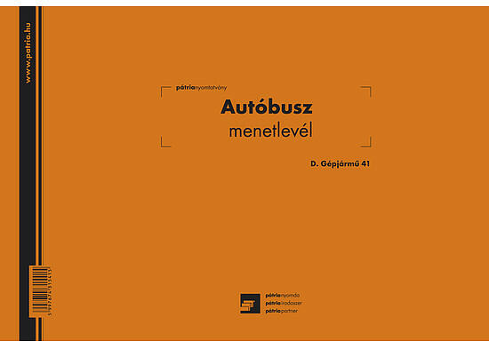 Autóbusz menetlevél. Méret: A/4. Formátum: fekvő. Lapszám: 100. Kiszerelés: 10 tömb/csomag.