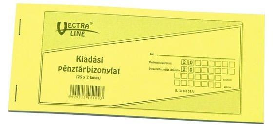 Kiadási pénztárbizonylat. Fekvõ, 2 0 lapos, 2 példányos. Minõségi belívvel, karton fedlappal rendelkezõ nyomtatvány. Tartós tűzött kötéssel és perforációval rendelkezik. Kiszerelés: 40 db/csomag.