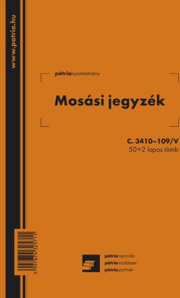 Mosási jegyzék 50x2 lapos tömb A/5 álló Mosási jegyzék 50x2 lapos tömb A/5 álló C. 3410-109/V