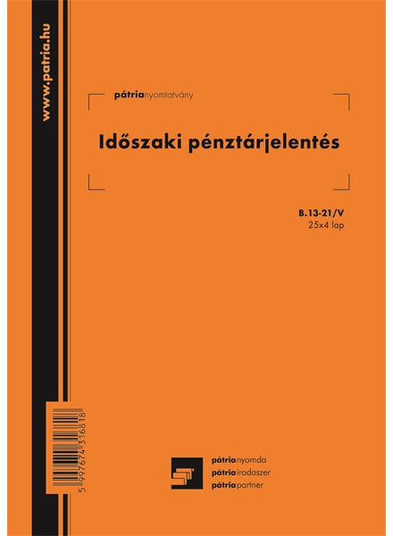B. 13-21/V A4 25x2+2lapos álló "Időszaki pénztárjelentés" nyomtatvány Időszaki pénztárjelentés 25 x 2+2 lapos tömb - A/4 álló - B. 13-21/V