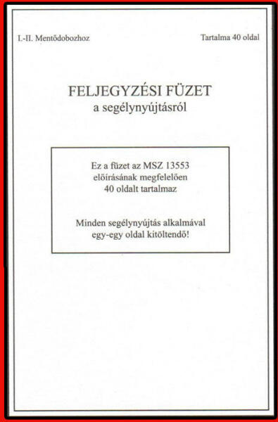 I. -II. mentőládához. Minden elsősegélynyújtás alkalmával egy-egy oldal kitöltendő! Ez a feljegyzési füzet az MSZ 13553 előírásának megfelelően 40 oldalt tartalmaz.