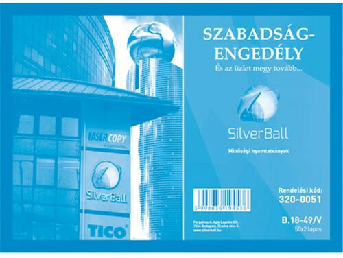 Szabadságengedély 50x2 lapos SilverBall Szabadságengedély formanyomtatvány Méret: A/6 50x2 lapos tömb fekvő