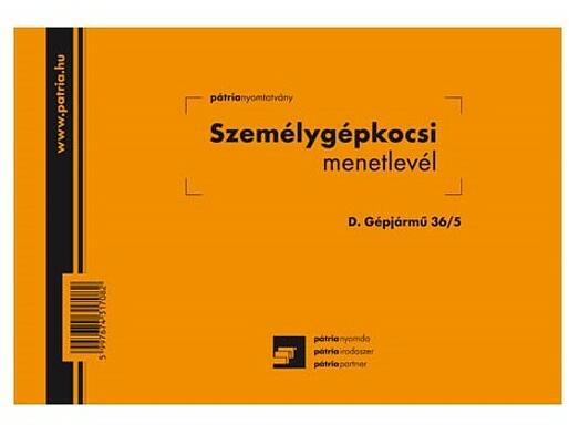 Személygépkocsi menetlevél. Méret: A/5. Formátum: fekvő. Lapszám: 100. Kiszerelés: 20 tömb/csomag.