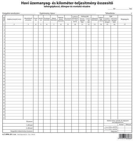 Havi összesítő (teher) szabadlap 295x295 mm lap 295x295 mm