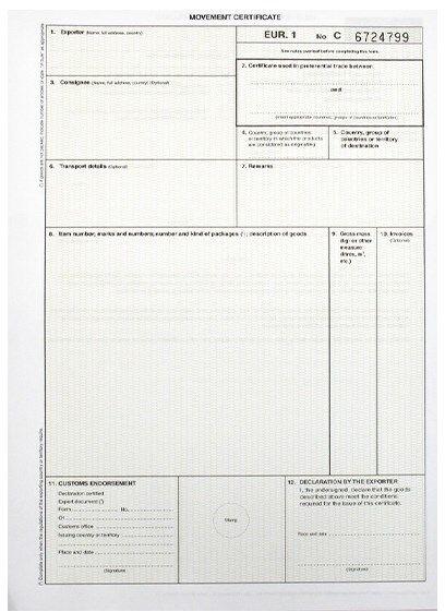 EUR1 ANGOL ÚJ. A/4 méretű, álló, 4 példányos. Kiszerelés: 400 db/csomag.