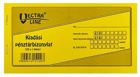 Kiadási pénztárbizonylat. Fekvő, 2 0 lapos, 2 példányos. Minőségi belívvel, karton fedlappal rendelkező nyomtatvány. Tartós tűzött kötéssel és perforációval rendelkezik. Kiszerelés: 40 db/csomag.