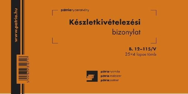 Készletkivételezési bizonylat 2 tételes 25x4 lapos tömb 203x102 mm B. 12-115/V Készletkivételezési bizonylat 2 tételes 25x4 lapos tömb 203x102 mm B. 12-115/V