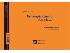 TEHERGÉPJÁRMŰ MENETLEVÉL A4 100LAPOS D. GEPJ. 21/UJ Felhasználási terület: A tehergépjárművek számára kötelező a menetlevél használata. A menetlevél kiállítása a küldemény feladójának, kezelése a szállító feladata. A szállítólevél meglétét és annak tartalmát a hatóságok ellenőrzik. 100 lapos tűzött tömb, A4, fekvő, rövidebb oldalán tűzve, karton borít
