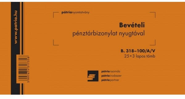 B. 318-100/A/V 25x3 "Bevételi pénztárbizonylat nyugtával" nyomtatvány
