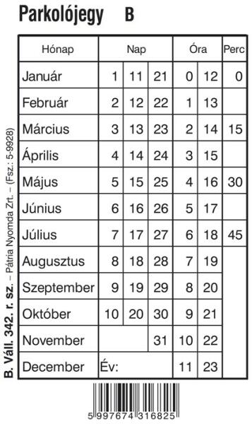 Parkolójegy 100 lapos tömb 80x120 mm Parkolójegy 100 lapos tömb 80x120 mm B. VALL. 342