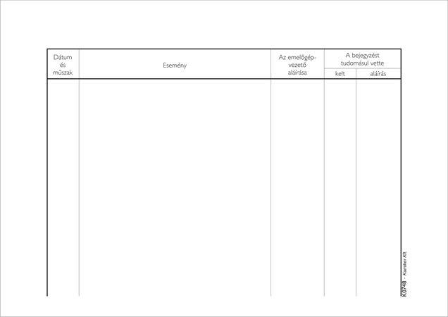 Nyomtatvány, emelőgépnapló, 25 lap, A5, VICTORIA PAPER, 20 tömb/csomag ellenőrzött minőség kiváló ár -érték arány kiszerelési egység tartalma: 20 tömb/csomag kivitel : 25 lapos A5 méret Letölthető dokumentáció: https://dokumentumtarhaz. hu/hasznalati_utmutato/NVKO748_hasznalat i_utmutato. pdf