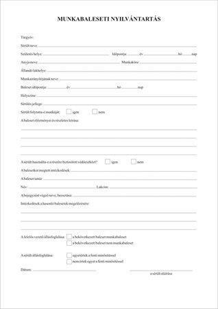 Nyomtatvány, munkabaleseti nyilvántartó napló, 32 oldal, A4, VICTORIA PAPER, 10 tömb/csomag ellenőrzött minőség kiváló ár-érték arány kiszerelési egység tartalma: 10 tömb/csomag kivitel : 32 lapos A4 méret Itt megtekinthető és letölthető a használati útmutató.