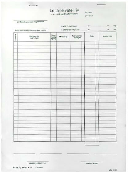 Nyomtatvány leltárfelviteli ív áru és göngyöleg felvételére VECTRA-LINE 50x3 Leltárfelvételi ív áru és göngyöleg felvételre. A/4 méretű, álló, 50 lapos, 3 példányos. Minőségi belívvel, karton fedlappal rendelkező nyomtatvány. Tartós tűzött kötéssel és perforációval rendelkezik. Kiszerelés: 10 db/csomag.