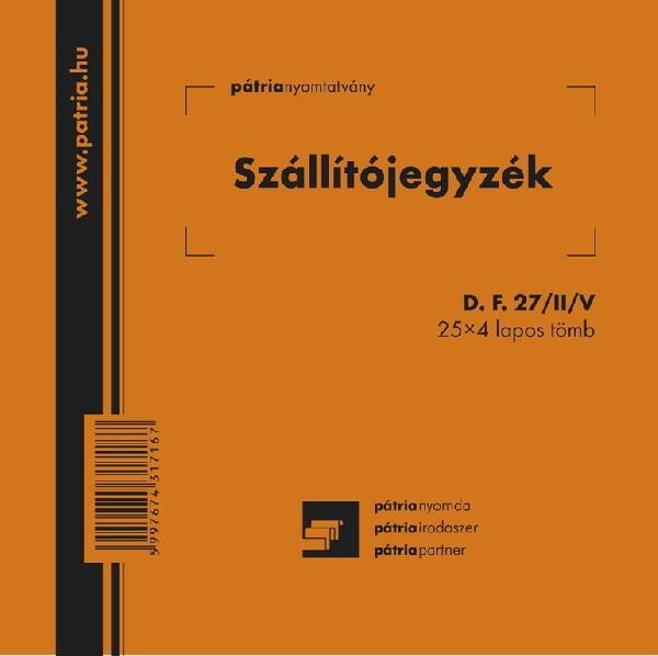 Szállítójegyzék 25x4 lapos tömb 140x140 mm Szállítójegyzék 25x4 lapos tömb 140x140 mm D. F. 27/II/V