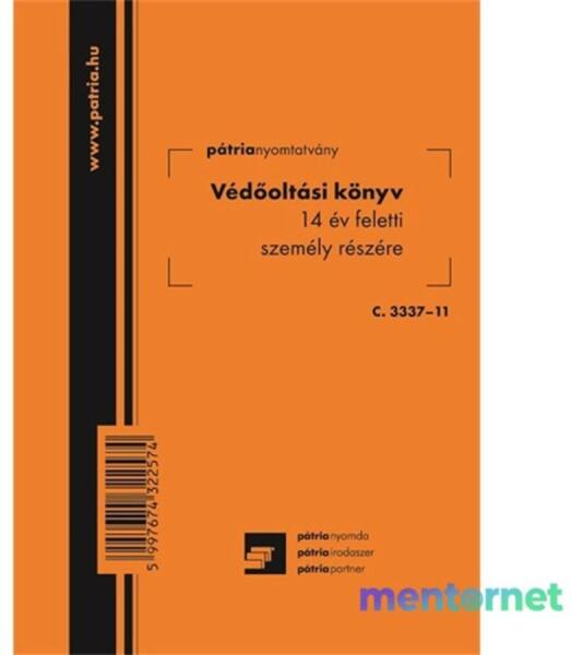 - Védőoltási könyv 14 év feletti személy részére 8 lapos füzet - Formátum: 100 x 140 mm álló - C. 3337-11 Típus NyomtatványokSzavatosság: a jogszabályi előírások szerint.